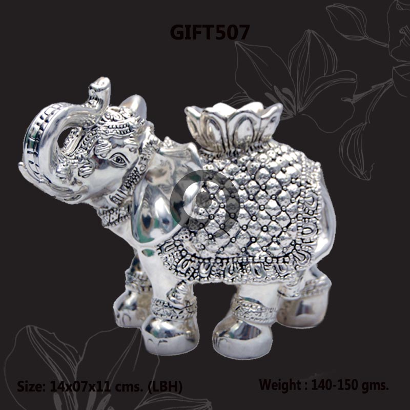 Beautifully Carved Elephant With Diya Design sculpture in pure 999 silver purity manufactured by automated electroforming process, hand crafted High polish and superior finishing.