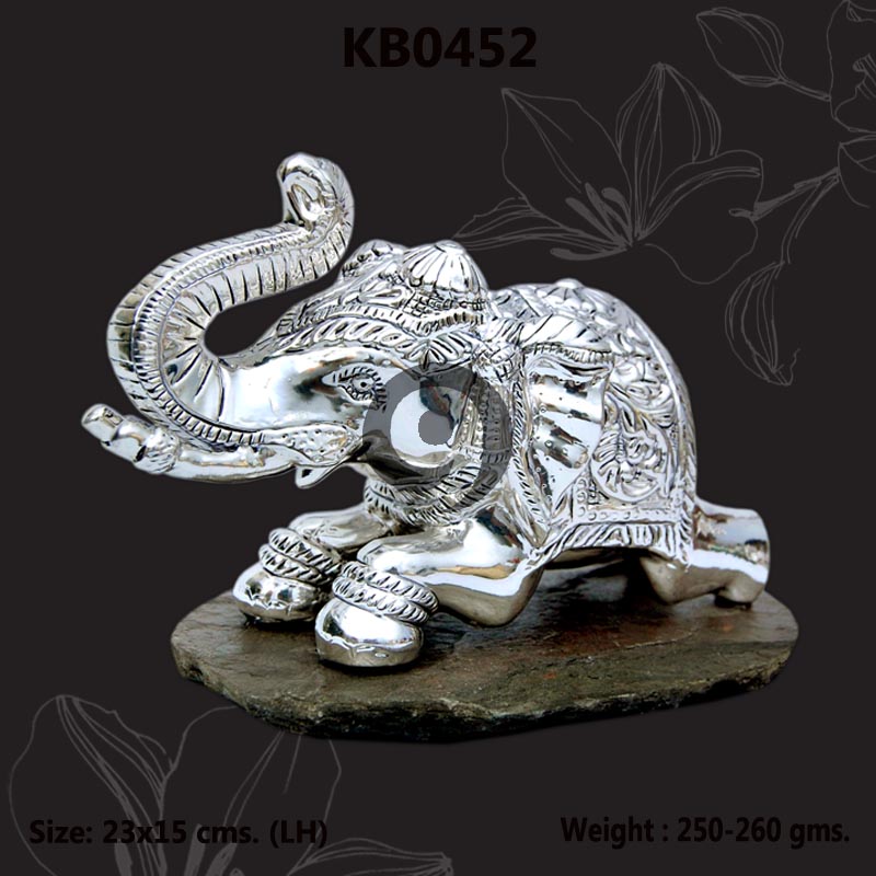 Sitting elephant with howdah sculpture in pure 999 silver purity manufactured by automated electroforming process, hand crafted High polish and superior finishing.
