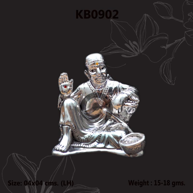Om Sai Baba Idol in pure 999 silver made by our special electroforming technique,has lifelike detailing and a high polished finish.