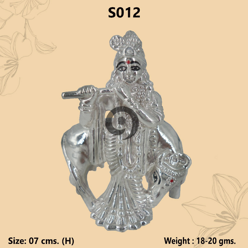 Bansi Wale Krishna Playing Flute Besides Cow idol